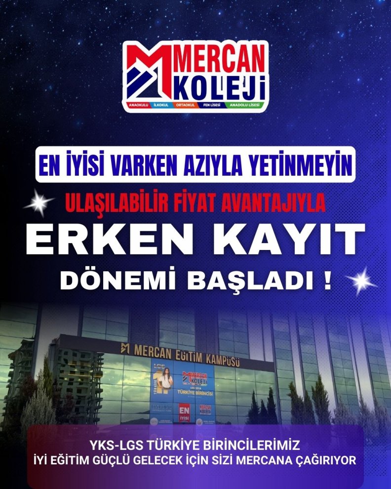 En iyisi varken azıyla yetinmeyin! Akademik başarıyı disiplin, vizyon ve güçlü eğitim sistemiyle birleştiren Mercan Koleji’nde erken kayıt dönemi başladı. ???? YKS & LGS Türkiye Birincileri çıkaran eğitim modeli ???? Anaokulundan liseye bütüncül akademik sistem ????‍???? Alanında uzman öğretmen kadrosu ???? Modern kampüs, güvenli eğitim ortamı ???? Ulaşılabilir fiyat avantajlarıyla ???? Erken kayıt fırsatlarını kaçırmayın! MERCAN KOLEJİ Malatya kampüsü İyi eğitim güçlü gelecek