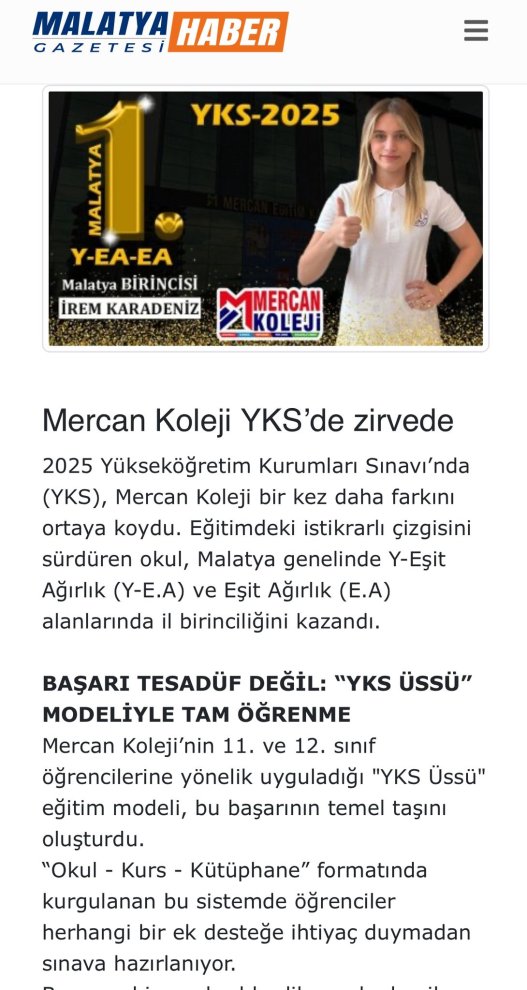 Basında MERCAN KOLEJİ mercan koleji malatya en iyi özel okul kolej